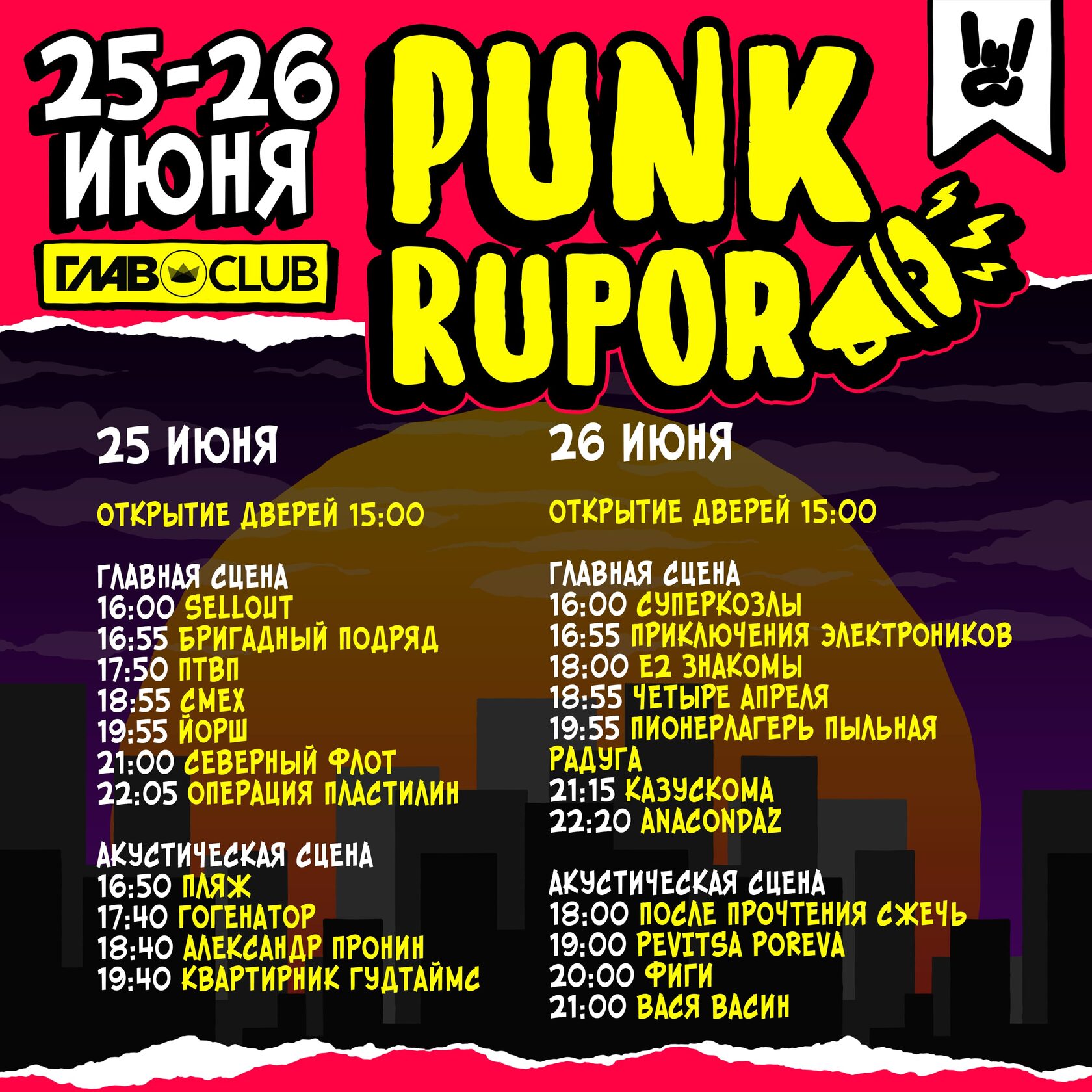 25 и 26 июня в столичном ГлавClub состоится очередной фестиваль PunkRupor. В этом году мероприятие будет организовано совместными усилиями двух компаний: ГлавCLUB и SHOWRMA во главе с бессменным продюсером PunkRupor Ильей Островским. Так что можете быть уверены, что PunkRupor пройдет на таком же высоком уровне, как и в предыдущие два года.